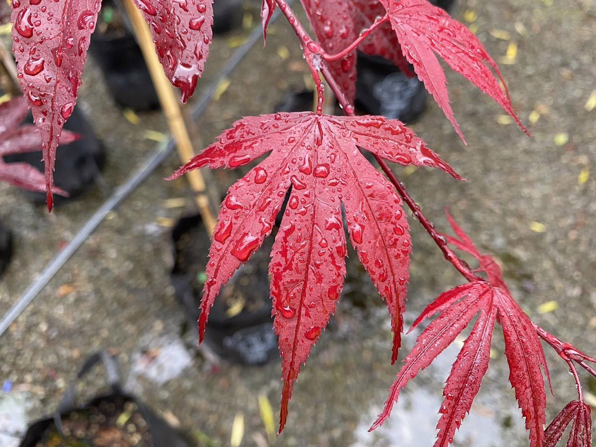The leaves are slender with pointed lobes and change from red in spring to dark red or purple in summer and finally to purple-red in autumn. Acer palmatum ‘Fireglow’ looks particularly stunning when the autumn foliage is back-lit by the sun. It prefers moist, well-drained soils, but may suffer from leaf scorch if exposed to excess sun, wind, or drought. It is cold hardy and an excellent option for bonsai. Acer palmatum is deciduous and native to Japan, Korea, China, eastern Mongolia, and southeast Russia. Acer palmatum ‘Fireglow’ was developed and raised in Agrate Brianza, Italy by the Fratelli Gilardelli nursery in the 1970s.