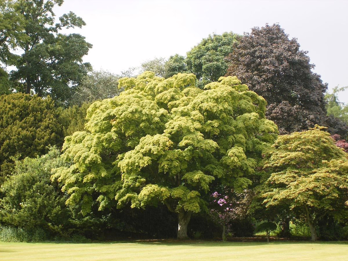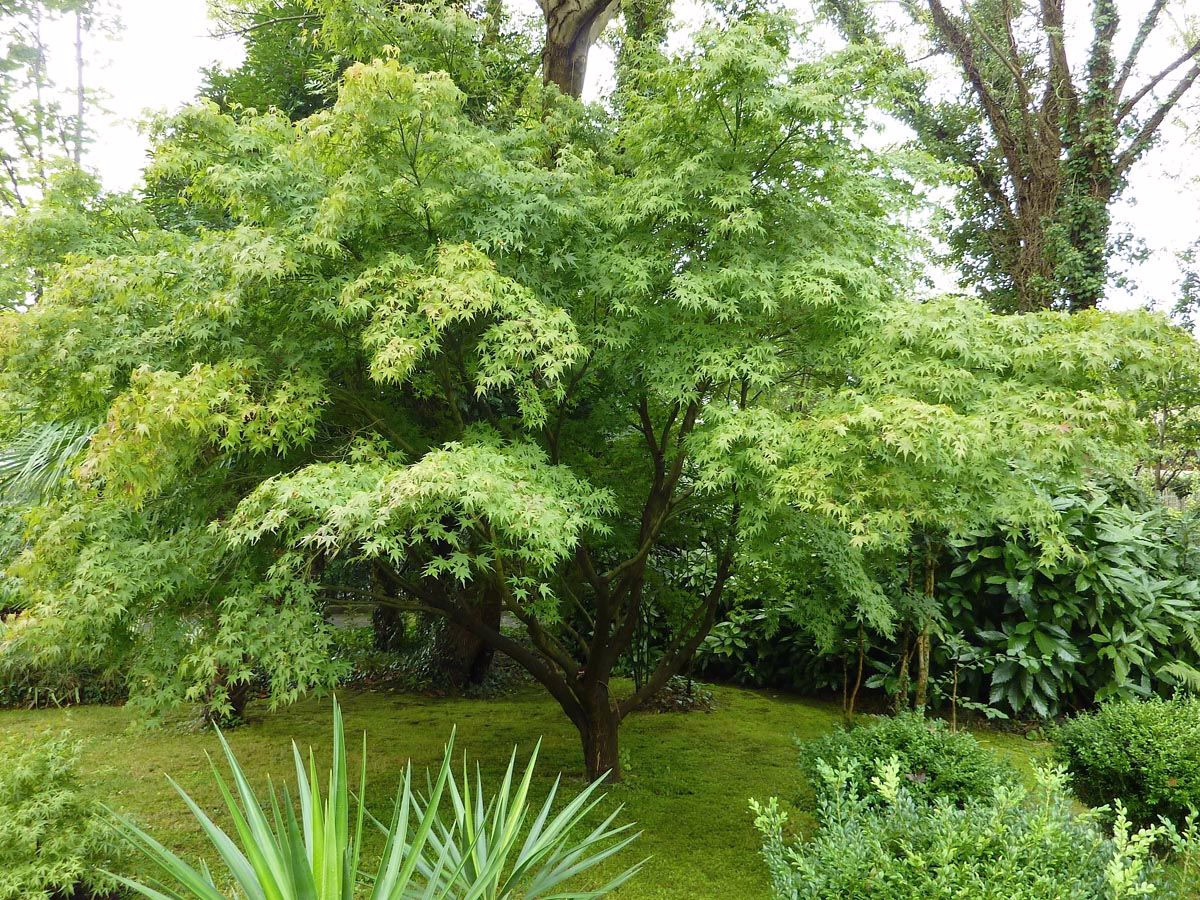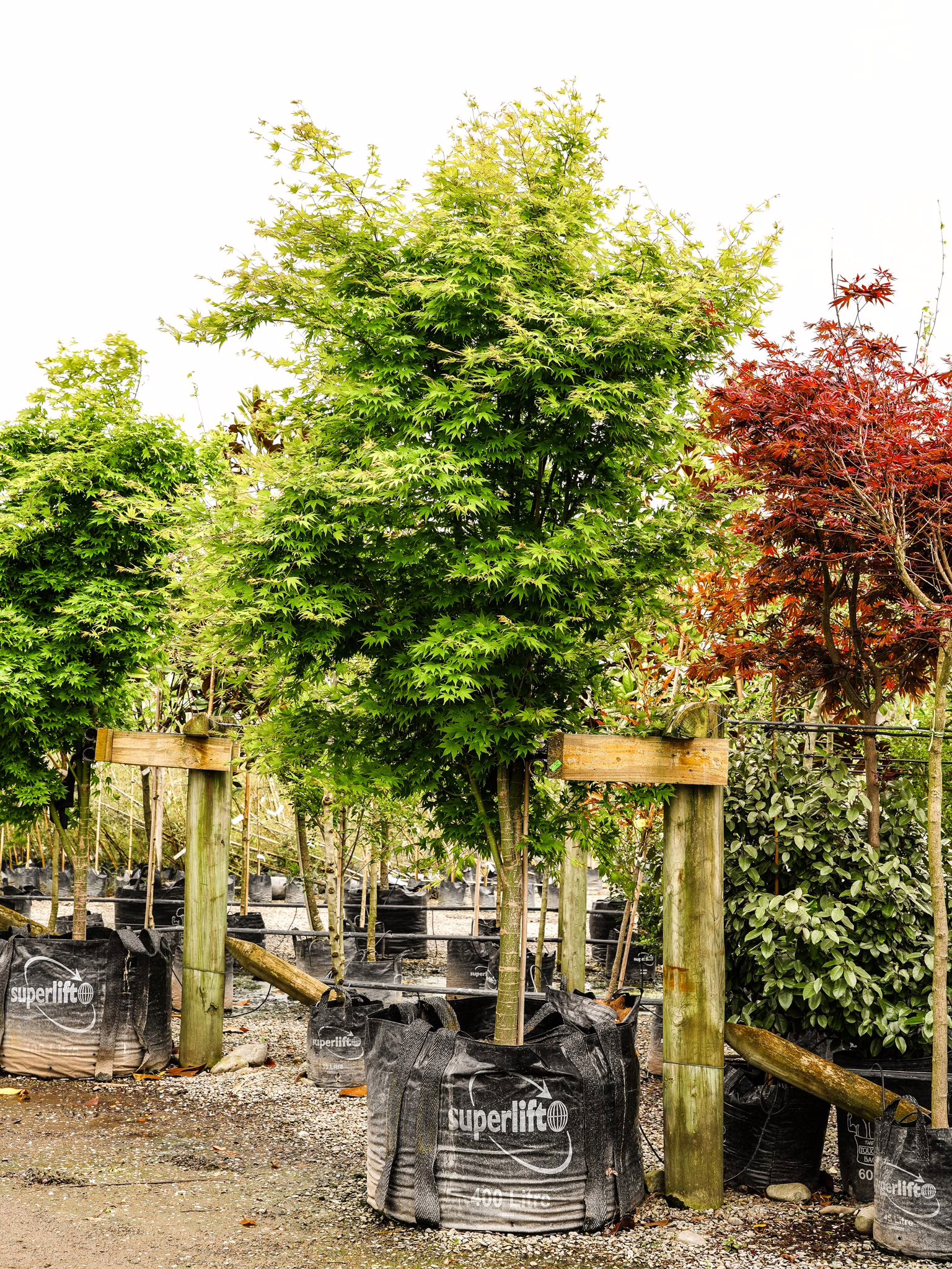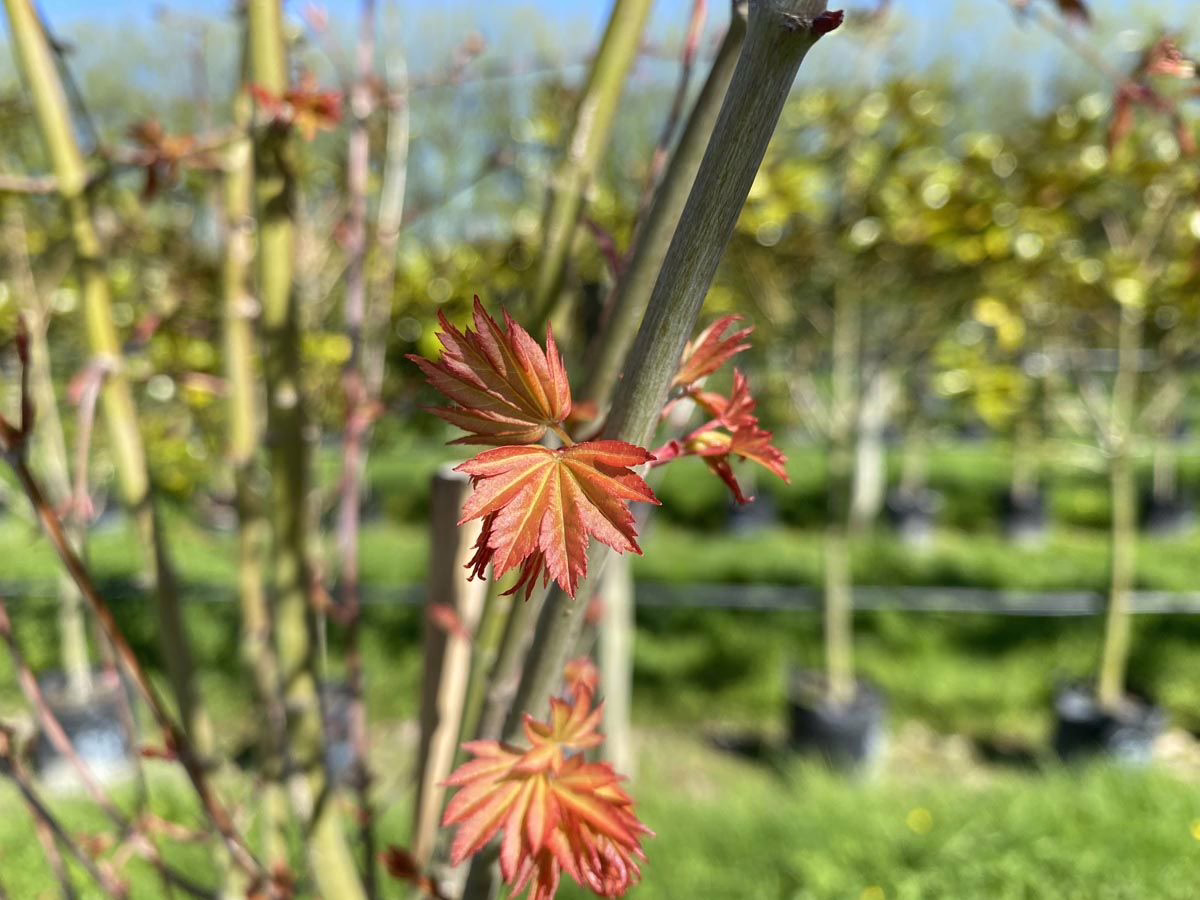 Acer palmatum develops a round-headed, open, airy structure with slender stems. The green leaves are deeply-lobed and dissected, and turn brilliant shades of yellow, orange, and red in autumn. It makes an excellent shade tree and is a great choice for planting along the street. Acer palmatum prefers moist, well-drained soils but may suffer from leaf scorch due to excess sun, wind, and drought. It is cold hardy and can also be used for bonsai. It is deciduous and native to Japan, Korea, China, eastern Mongolia, and southeast Russia.