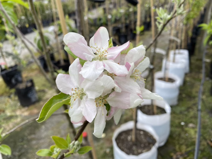 Apple ‘Liberty’ is an excellent choice for organic growers as it is highly resistant to black spot disease and requires little, if any, spraying. The fruit has a red blush, with a crisp, juicy, sweet-tart flavor, and Apple ‘Liberty’ is known to be a heavy bearer. The fruit becomes ripe from mid to late autumn, and in spring, the pink buds develop into white flowers. While Apple ‘Liberty’ is self-fertile, it is best to plant it with early-flowering cultivars such as Apple ‘Braeburn’ to achieve the best crop. Additionally, the fruit is an excellent keeper. Apple is deciduous and native to Afghanistan, Kazakhstan, Kyrgyzstan, Pakistan, Tajikistan, Uzbekistan, and China. Apple ‘Liberty’ was developed in 1955 by the New York State Agricultural Experiment Station in Geneva, New York, United States and was first released into commerce in 1978.
