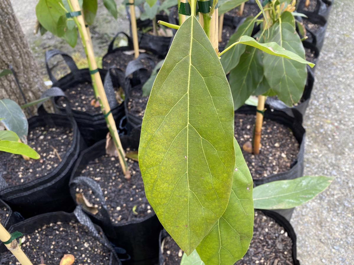 Avocado ‘Hass’ is the most commonly-grown avocado cultivar in the world. Its fruit has a very nutty, rich taste, and the flesh has a smooth texture with a thick skin-casing. When the fruit is ripe, the skin turns purple-black. It is typically harvested from late spring to early autumn. While it is self-fertile, it produces better crops when planted alongside Avocado ‘Bacon’. Avocado ‘Hass’ forms a thick canopy with a spreading habit. Avocado is evergreen and native to Central America from Mexico to Costa Rica. Avocado ‘Hass’ was planted in 1926 by Rudolph Hass in La Habra Heights, California, United States. Rudolph bought the seedling from A. R. Rideout of Whittier, California, United States. The original Avocado ‘Hass’ tree stood and produced fruit until it died in 2002.