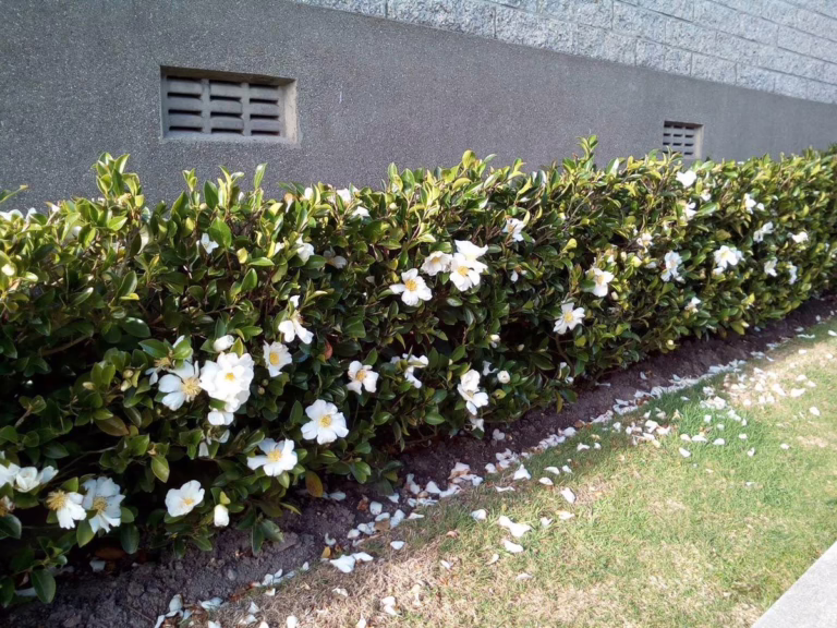 Camellia sasanqua ‘Setsugekka’ produces medium-sized, single to semi-double flowers in pure white with 7 to 12 incurved petals and a slight fragrance. Camellia sasanqua ‘Setsugekka’ blooms from early autumn to mid-winter, and has an upright, vigorous growth habit with deep-green leaves usually measuring 5 to 7cm long by 2 to 3cm wide. Camellia sasanqua ‘Setsugekka’ is an excellent choice for hedges, providing a beautiful and fragrant border. Camellia sasanqua is evergreen and native to China and Japan. Camellia sasanqua ‘Setsugekka’ was produced by Jisuke Minagawa in Japan.