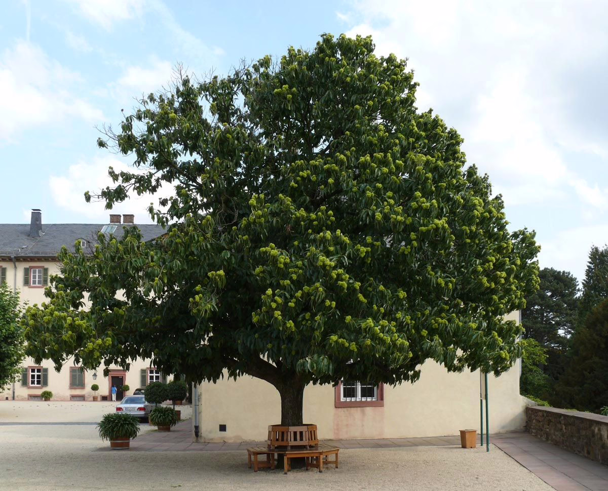 Castanea sativa forms a tall and stately tree with wide-spreading branches, making it an excellent choice for providing shade in wide, open spaces. Castanea sativa has glossy, deep-green leaves with sharply-toothed margins. In autumn, Castanea sativa produces red-brown fruits wrapped in a green, spiky case that add to its visual appeal. Castanea sativa also produces yellow autumn leaves, providing additional seasonal interest. While Castanea sativa has both male and female flowers on the same tree, it is mostly self-incompatible, so more than one tree is required for pollination and nut production. Castanea sativa is deciduous and native to Southern Europe and Asia Minor and is found across the Mediterranean region, from the Caspian Sea to the Atlantic Ocean.