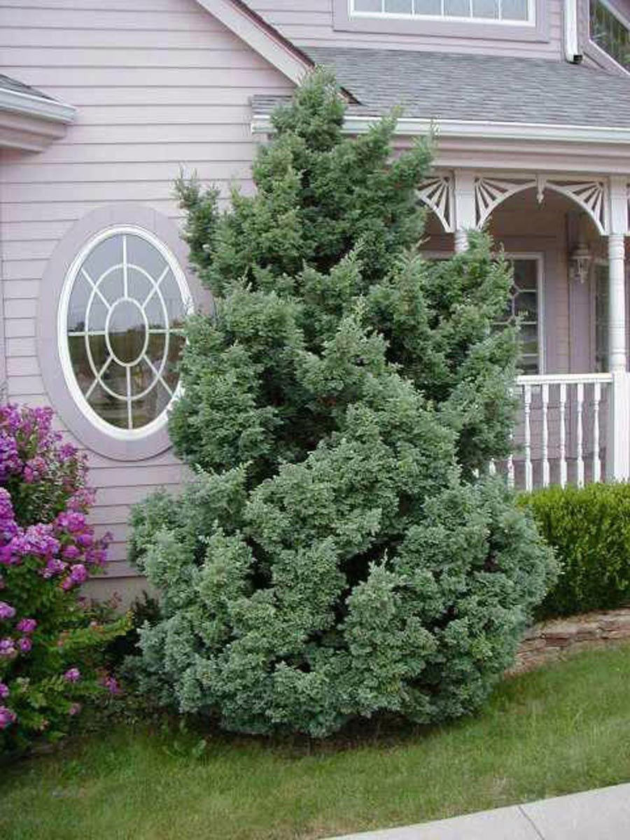 Chamaecyparis pisifera ‘Boulevard’ has a dense and pyramidal growth habit, with silver-blue leaves that are soft to the touch. Its unique color and form are particularly outstanding. Chamaecyparis pisifera is evergreen and native to central and southern Japan, on the islands of Honshū and Kyūshū. Chamaecyparis pisifera ‘Boulevard’ originated in 1934 as a sport on a specimen of Chamaecyparis pisifera ‘Squarrosa’ and was introduced to the nursery trade by Mike Kempenaar of Boulevard Nurseries, Middletown, Rhode Island, United States.