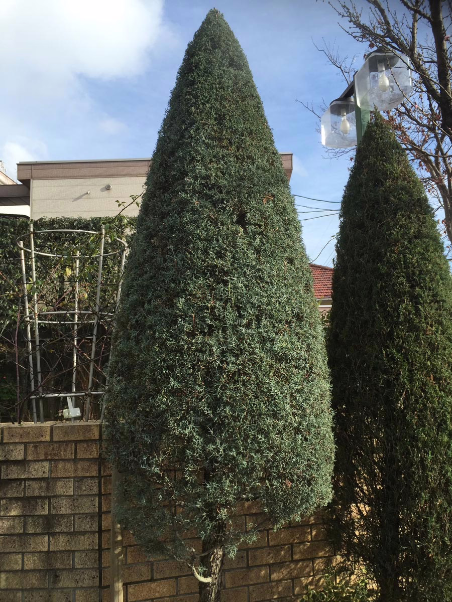 This conifer is compact and pyramidal in growth, with smooth, frosted, blue leaves. It is very amenable to pruning and can be trimmed into any desired shape or form. Cupressus arizonica var. glabra ‘Blue Ice’ is quick-growing and hardy, withstanding strong winds and drought. It makes an excellent choice for dense shelter. Cupressus arizonica var. glabra ‘Blue Ice’ is almost immune to cypress canker, making it a low-maintenance option for gardeners. Cupressus arizonica var. glabra is evergreen and native to a wide area around Sedona, Arizona, United States. Cupressus arizonica var. glabra ‘Blue Ice’ was discovered as a chance seedling in 1960 by Duncan & Davies Nurseries in New Plymouth, New Zealand and introduced by them into commerce in 1984.
