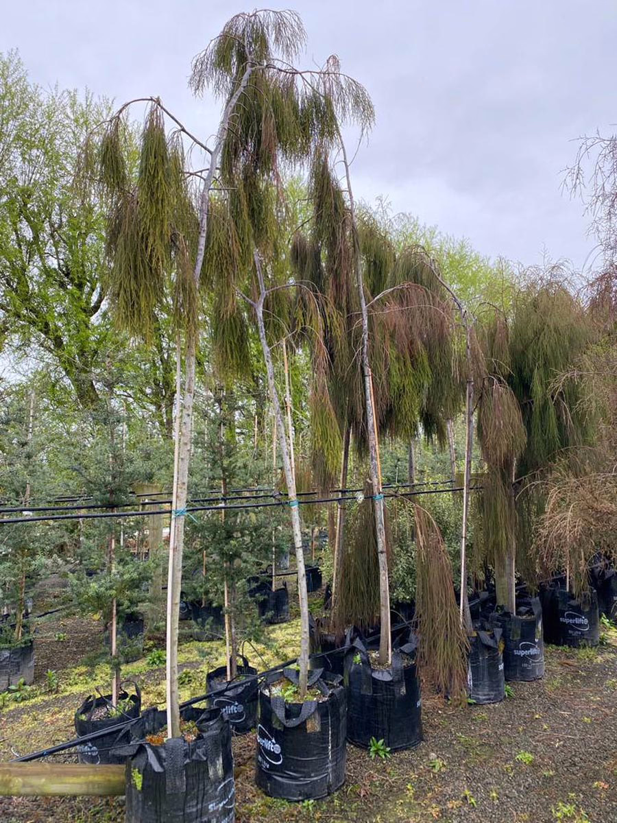 Standard height is the height of the clear trunk before the graft and branching begins. Low worked (LW) trees are grafted or allowed to branch much lower on the trunk. Clear trunk (CT) vs Bushy is the difference between trimming branches up and allowing them to grow out from lower down on the trunk. Cloud pruned trees have foliage that is shaped into distinct, rounded “clouds” on carefully spaced branches.