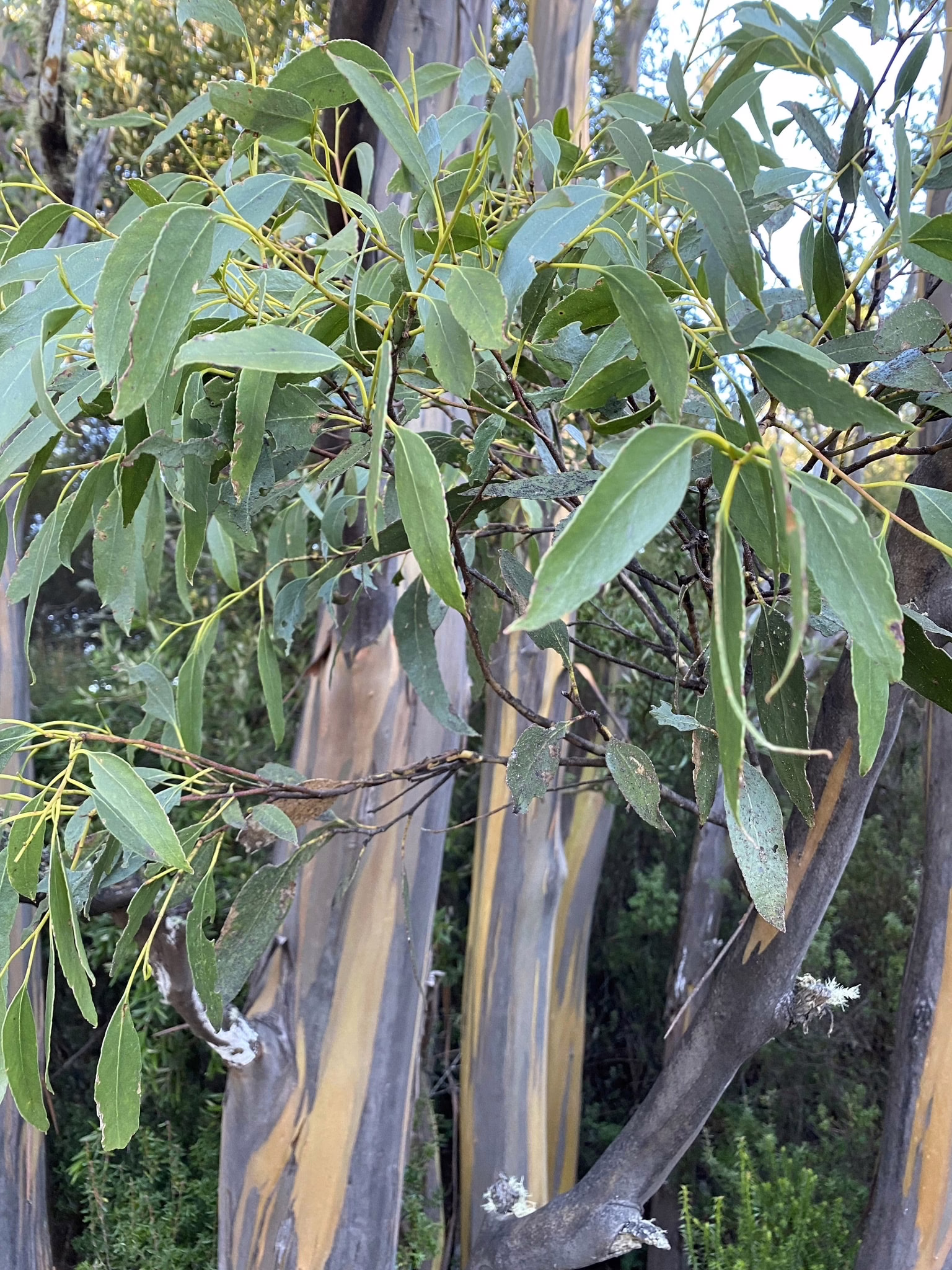 Eucalyptus johnstonii has thick, dark-green leaves and its bark is a distinctive yellow-green color. It is capable of growing in wet areas and can also tolerate drought conditions. Additionally, Eucalyptus johnstonii is known for its fast growth rate. Eucalyptus johnstonii is evergreen and native to Tasmania, Australia.