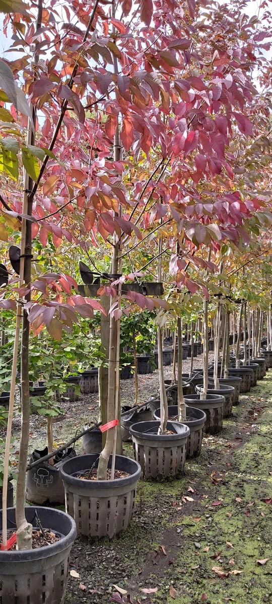 Fraxinus excelsior ‘Purple Spire’ produces glossy, green, pinnate leaves throughout the spring and summer months. In the autumn, the leaves turn a beautiful purple and glowing-orange color, providing a stunning display. It is an excellent choice for lining avenues and driveways or as a street tree, with an upright form. Additionally, Fraxinus excelsior ‘Purple Spire’ can tolerate strong winds, making it a durable option for a variety of environments. Fraxinus excelsior is native throughout mainland Europe, Britain, and Ireland. ‘Purple Spire’ was developed by Frank Goeddert of Frank’s Trees in Nelson, New Zealand (PVR 2984).