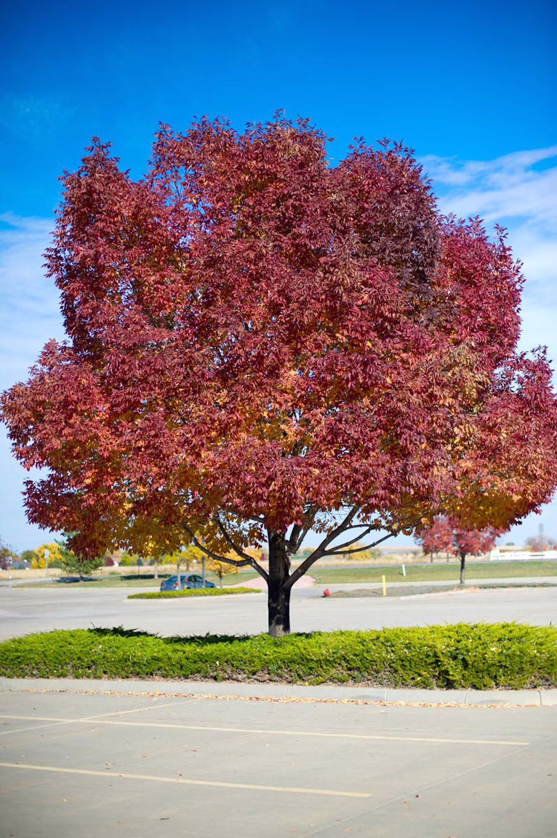 Fraxinus pennsylvanica ‘Cimmzam’ grows uniformly erect, with glossy-green pinnate leaves that provide an attractive canopy. In the autumn, the leaves turn a fiery orange to red, adding a striking display of color to the surrounding area. Fraxinus pennsylvanica ‘Cimmzam’ is tolerant of drought and high winds, making it a durable option for a variety of environments. It is an excellent choice for lining avenues and driveways or as a street tree, providing both beauty and shade to the surrounding area. Fraxinus pennsylvanica is deciduous and native to eastern and central North America.