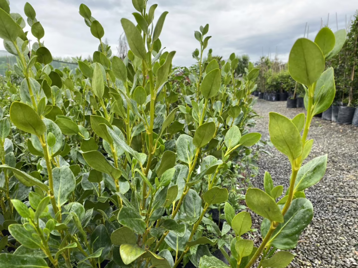 Griselinia littoralis ‘Gecko Green’ is a compact grower with dense, glossy, emerald-green foliage. It is an excellent option for low-hedging due to its tidy and compact growth habit. Griselinia littoralis ‘Gecko Green’ is tolerant to wind and coastal conditions, but it requires a well-drained site in full sun to semi-shade. It produces small, green-yellow flowers in late spring to mid-summer. Griselinia littoralis is evergreen and native to New Zealand.