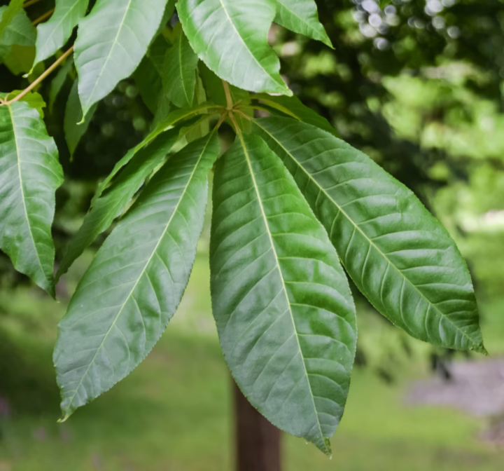 Juglans regia is a slow-growing option with a wide-spreading, rounded head. It is an excellent choice for planting in paddocks. Juglans regia produces easy-to-crack walnuts during the autumn months, usually around fifteen years from planting. During the late spring to early summer, Juglans regia produces yellow-green catkins which serve as a source of pollen for bees. While Juglans regia is self-fertile, it can produce better crops when planted with a walnut cultivar like Juglans regia ‘Meyric’, Juglans regia ‘Shannon’, or Juglans regia ‘Wilson’s Wonder’. Juglans regia is deciduous and native to the region stretching from the Balkans eastward to the Himalayas and southwest China.