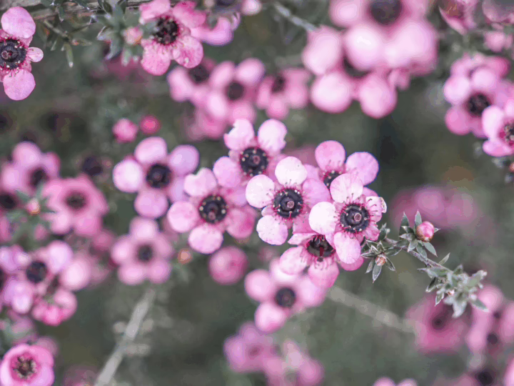 Leptospermum scoparium ‘Kiwi’ produces a beautiful display of single, pink flowers in the spring and summer, which add a lovely touch of color to any garden or landscape. It also features purple-green foliage, making it an attractive addition to the garden throughout the growing season. Leptospermum scoparium is evergreen and native to New Zealand and the states of New South Wales, Tasmania, and Victoria in Australia. Leptospermum scoparium ‘Kiwi’ was developed by Victor Davies of Duncan & Davies Nurseries in New Plymouth, New Zealand and was first listed in their 1956 catalogue.