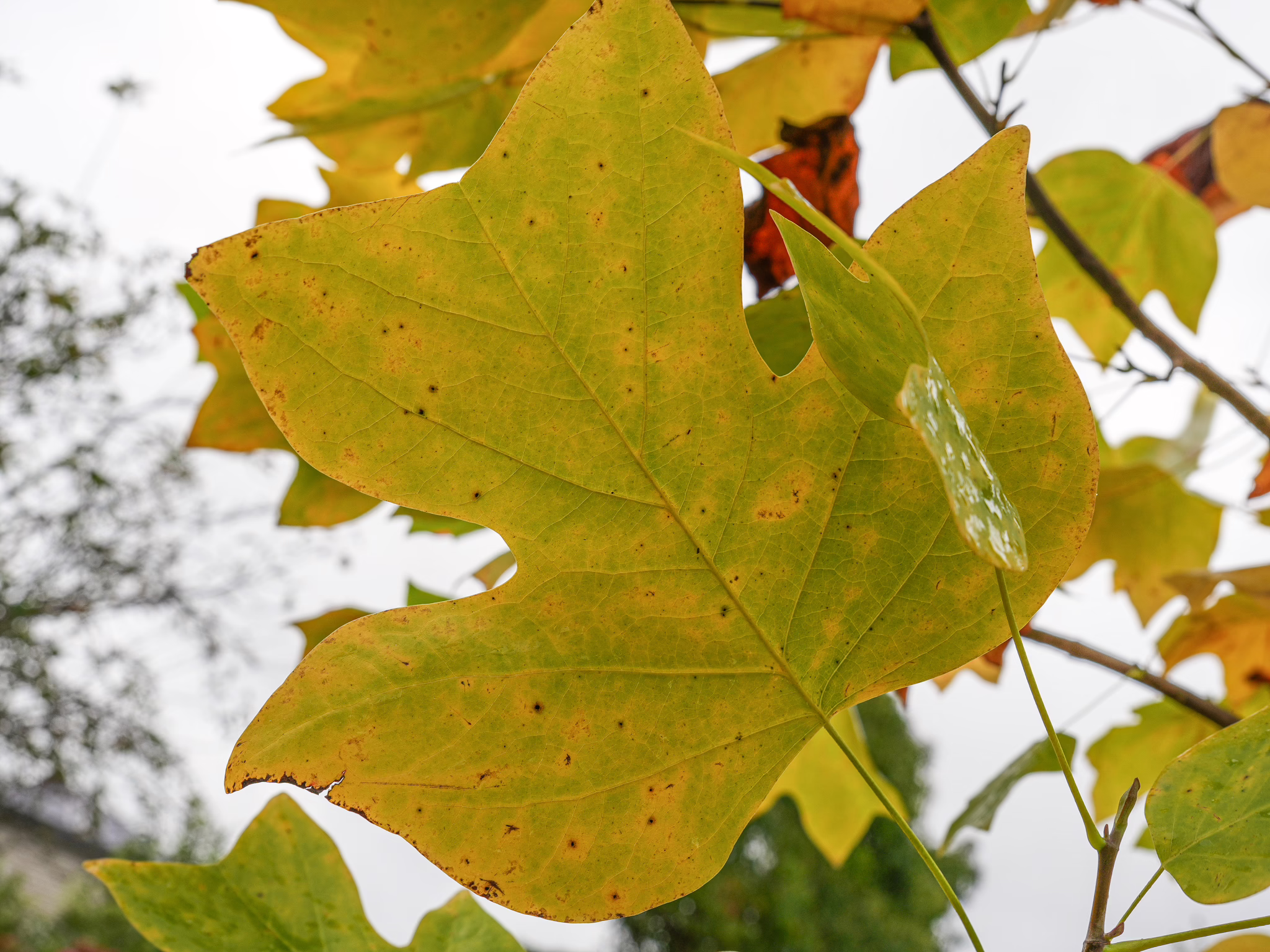 Deciduous plants shed all their leaves for part of the year (usually in autumn and winter), usually in response to colder temperatures or dry seasons, often producing seasonal colour before leaf drop.