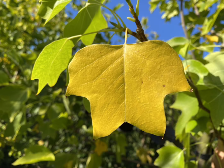 Liriodendron tulipifera is a magnificent, tall, pyramidal specimen with a broad, spreading crown. Its beautiful bright-green leaves transform into a glorious butter-yellow hue during autumn. In summer, it produces fragrant yellow, orange-banded, tulip-shaped flowers. It is an excellent choice as a large lawn and paddock tree. It is deciduous and native to eastern North America.