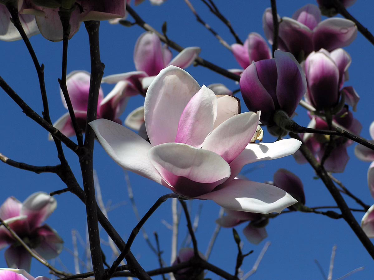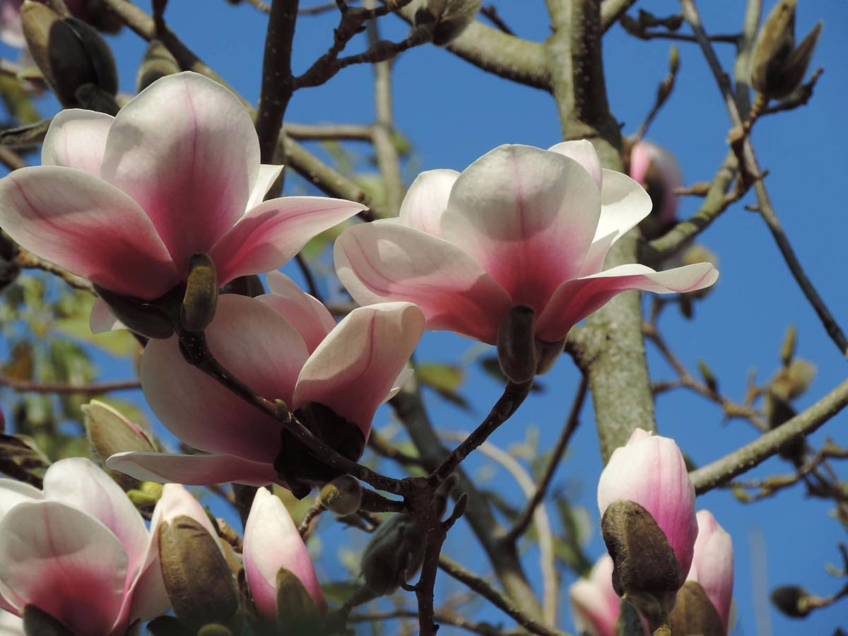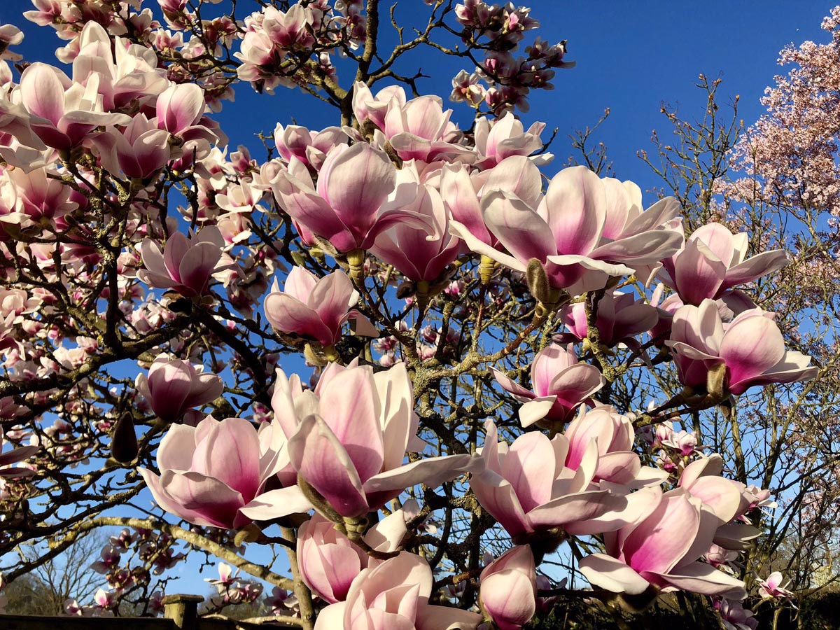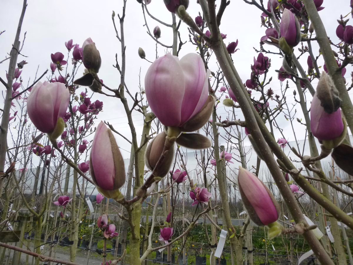 Magnolia ‘Athene’ is an erect, vase-shaped tree that becomes more rounded as it matures. It starts flowering from an early age and should produce its first blooms within a year of planting. The large, fragrant flowers are cup and saucer-shaped with thick and rounded tepals. The flowers are ivory-white, but they are also flushed with violet-pink at the base, adding to their visual appeal. Magnolia ‘Athene’ typically blooms in the mid-spring. It is deciduous, not native to New Zealand, and a hybrid between Magnolia x soulangeana ‘Lennei Alba’ and Magnolia ‘Mark Jury’. ‘Athene’ was bred by Felix Jury in New Zealand in the early 1960s and introduced in 1988.