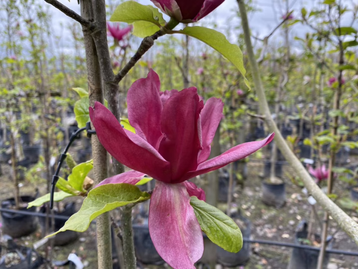 This Magnola produces goblet-shaped flowers that are dark purple-red and bloom for about ten weeks through the spring, with a possible second summer flowering. The flowers have up to 12 tepals. Magnolia ‘Genie’ produces healthy leaves and is proven to be frost hardy, making it a great choice for cooler climates. It is ideal for planting in areas with limited space. Magnolia ‘Genie’ is deciduous, not native to New Zealand, and a hybrid between Magnolia ‘Sweet Valentine’ and the hybrid formed between Magnolia x soulangeana ‘Sweet Simplicity’ and Magnolia liliiflora ‘Nigra’. ‘Genie’ was selected by Vance Hooper in 1998 in Waitara, Taranaki, New Zealand (PVR 2853).