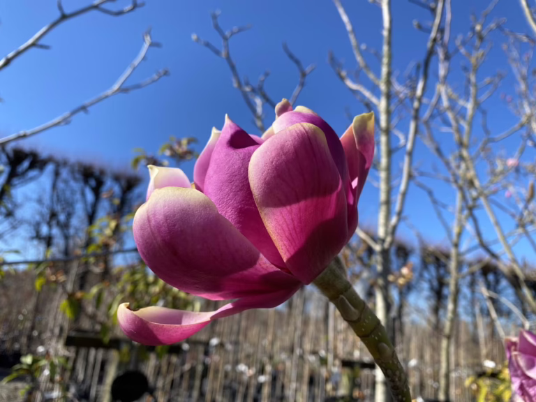 This Magnolia produces large, glowing red-purple flowers with pink interiors, which are bowl-shaped and can be as wide as 15cm. Magnolia ‘J. C. Williams’ blooms prolifically from an early age, typically in mid-spring. It has a large, upright and spreading form with an open and airy appearance. Magnolia ‘J. C. Williams’ is deciduous, not native to New Zealand, and a hybrid between Magnolia sargentiana and Magnolia sprengeri var. diva ‘Diva’. ‘J. C. Williams’ was raised by Phillip Tregunna, the head gardener at Caerhays Castle in Cornwall, England. Julian Williams registered ‘J. C. Williams’ and named it after his grandfather, who was responsible for planting the Caerhays garden.