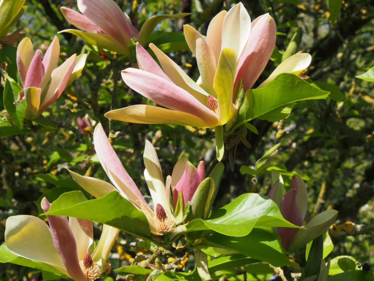 Magnolia x brooklynensis ‘Woodsman’ is an upright grower and produces late-spring flowers that are green and purple-pink on the outside, with yellow-white interiors that are veined with pink. It is an excellent choice for street planting. Magnolia x brooklynensis is deciduous, not native to New Zealand, and a hybrid between Magnolia acuminata and Magnolia liliiflora. Magnolia x brooklynensis was first crossed in the 1950s by Evamaria Sperber at the Brooklyn Botanic Garden’s Kitchawan Research Station in New York City, New York, United States. Magnolia x brooklynensis ‘Woodsman’ is a hybrid between Magnolia acuminata ‘Klassen’ and Magnolia liliiflora ‘O’Neill’. ‘Woodsman’ was raised by Joe McDaniel in Illinois, United States and first flowered in 1972.