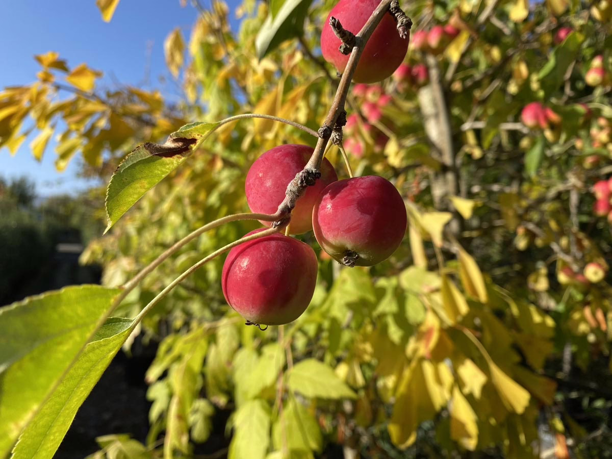 This upright, compact tree becomes covered in mid-spring with large, fragrant, pure-white blossoms that last for a long period. Malus ‘Jelly King’ produces huge crops of medium-sized, pink-red crabapples in the autumn. It is an excellent option as a street tree and is resistant to disease. Additionally, Malus ‘Jelly King’ is self-fertile, so it doesn’t need another tree to produce fruit. ‘Jelly King’ is deciduous, not native to New Zealand, and was developed by Matthews Nurseries in Whanganui, New Zealand (PVR 1390).