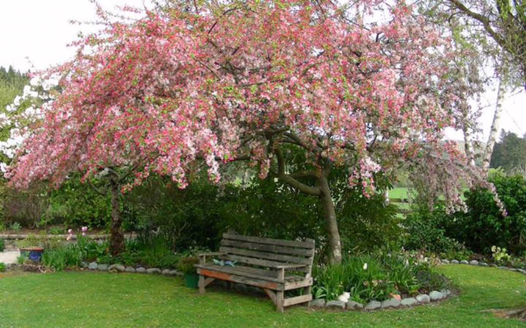 This strong-growing tree can be trained to form a horizontal canopy of arching branches. During early spring, Malus x floribunda produces a mass of crimson-red buds that open to white flowers with a hint of pink. In the autumn, it develops small red crabapples, and they are often quickly consumed by birds. It is deciduous, not native to New Zealand, and probably a hybrid between Malus toringo and Malus baccata. Malus x floribunda was first introduced to Europe from Japanese cultivation sometime in the 19th century by Philipp Franz von Siebold (1796 – 1866).