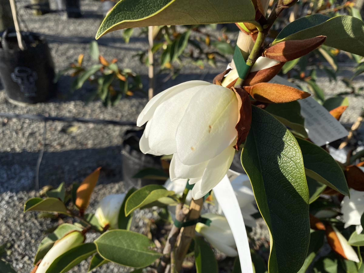 Michelia ‘Lemon Fragrant’ is a tidy, pyramid-shaped cultivar that features appealing, fresh-green foliage. It produces a profusion of large, cream-white, star-shaped flowers with a delightful lemon scent throughout the early spring and for an extended period. It is versatile and can be used for hedging, trimmed into any desired form, or grown as a distinctive tree. Michelia ‘Lemon Fragrant’ is evergreen, not native to New Zealand, and a hybrid between Michelia x foggii ‘Bubbles’ and Michelia foveolata. ‘Lemon Fragrant’ was developed before 2009 by Thirkettle Nurseries in Nelson, New Zealand (PVR 3144).