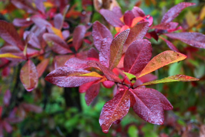 Deciduous plants shed all their leaves for part of the year (usually in autumn and winter), usually in response to colder temperatures or dry seasons, often producing seasonal colour before leaf drop.