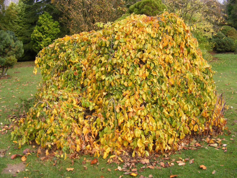 Parrotia persica ‘Pendula’ is a weeping form of Parrotia persica that grows into a mound shape. It features beautiful autumn colors of orange, yellow, red, and purple, making it an awesome choice as a feature tree. However, it requires ample space to grow. It is also capable of withstanding considerable drought and wind exposure. During late winter to early spring, it produces stunning red flowers. Parrotia persica is deciduous and native to Iran, Armenia, Georgia, and Azerbaijan. Parrotia persica ‘Pendula’ originated in 1934 at the Royal Botanic Gardens, Kew in London, England.
