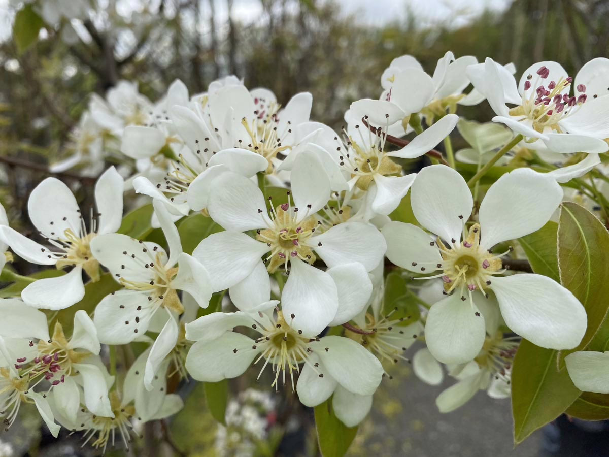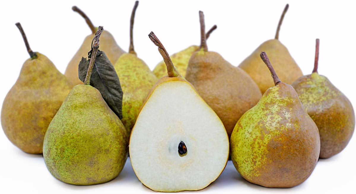 In late-autumn, small dessert pears with russeted, green skin ripen. Pear ‘Winter Cole’ is a prolific and reliable fruiter, and has a spreading growth habit. The fruit lasts well into winter, making it a good keeper. The pollinators of Pear ‘Winter Cole’ include Pear ‘Beurre Bosc’, Pear ‘Packham’s Triumph’, and Pear ‘Williams’ Bon Chrétien’. During spring, Pear ‘Winter Cole’ produces white blossoms, and in autumn, its leaves turn yellow and orange. Pear is deciduous and native to Europe. Pear ‘Winter Cole’ is a seedling of Pear ‘Winter Nelis’ that was raised by J. C. Cole in Richmond, Melbourne, Victoria, Australia and was introduced in the late 1880s.