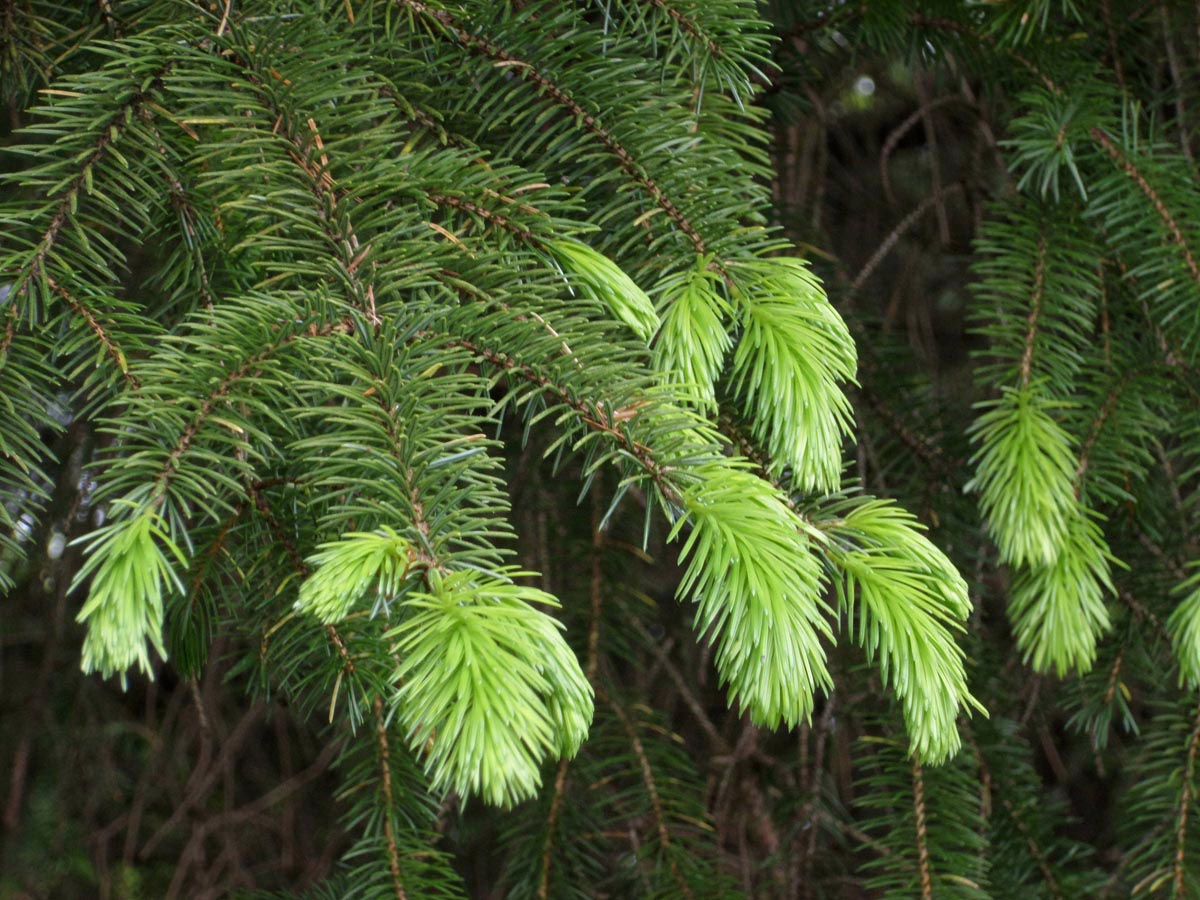 Picea sitchensis has a narrowly-conical growth habit and features blue-green needles and yellow-brown cones. It prefers moist soils that are consistently wet and is tolerant of windy and coastal sites. Picea sitchensis is evergreen and native to the west coast of North America from Alaska to California in the United States and also British Columbia in Canada.