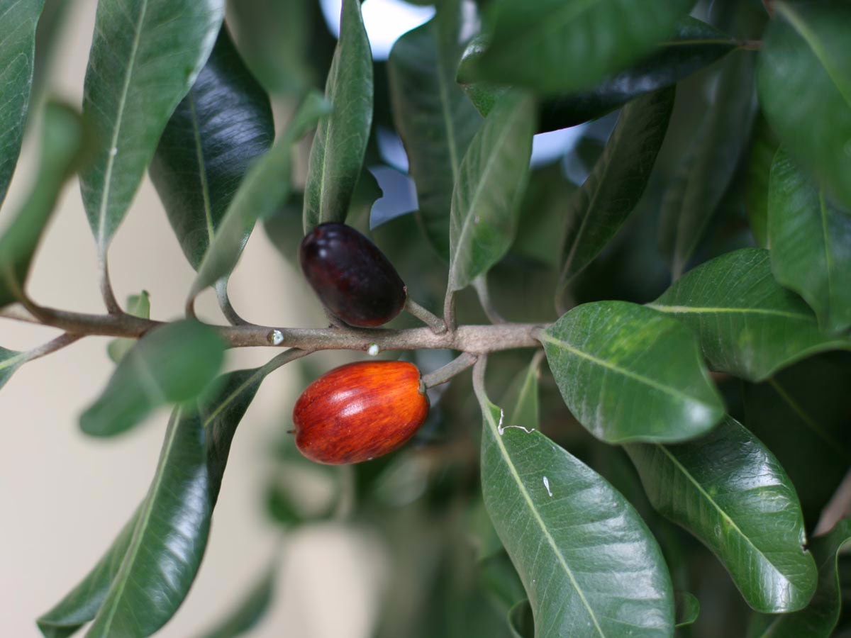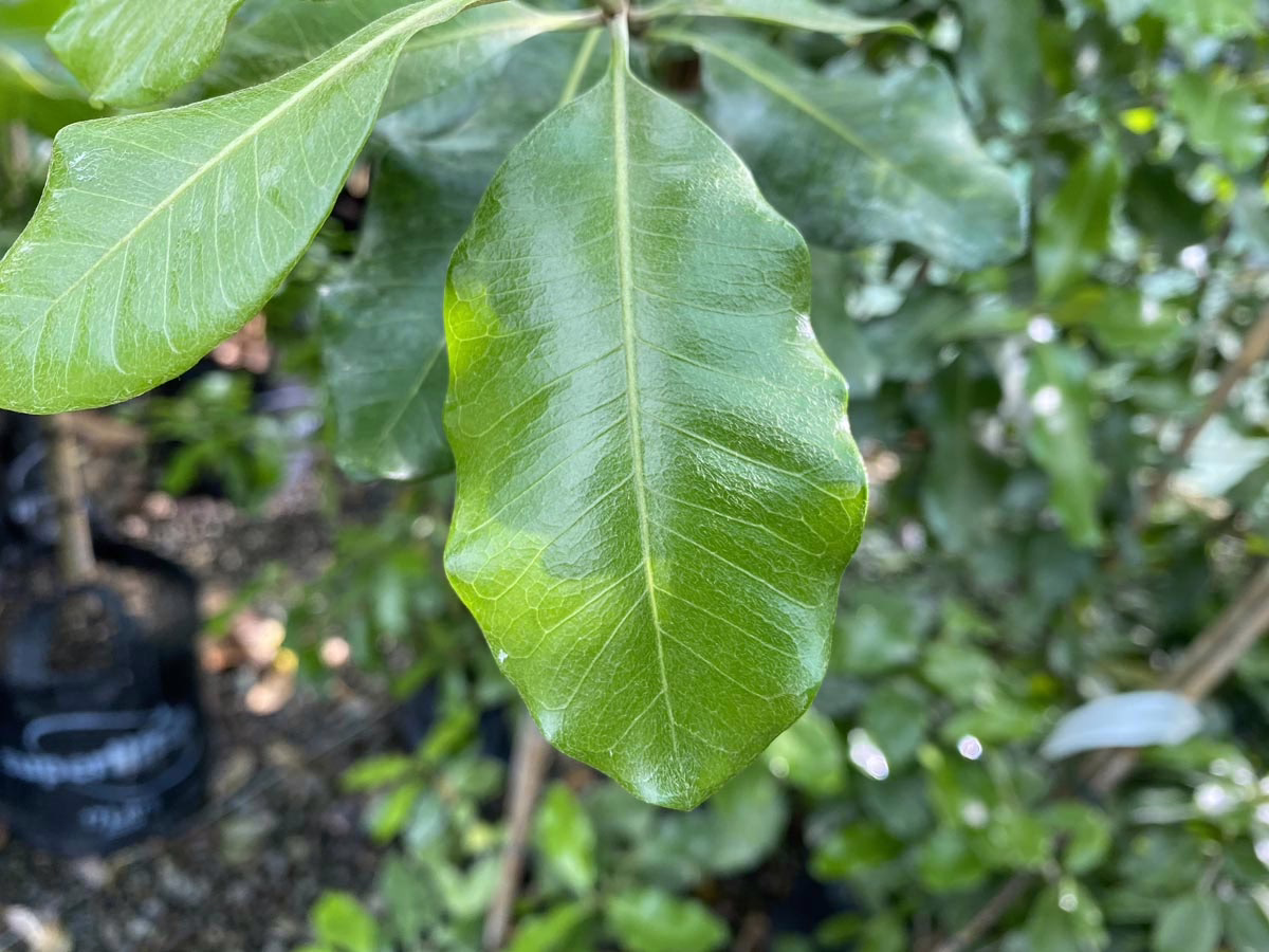 This hardy coastal tree has an upright form when young, which matures into an open and spreading habit. It features distinctive, leathery, shiny green leaves, and produces large fruit that are roughly the size of dates. These fruits, which are red when unripe and turn to purple-black when ripe, are adored by birds, and are produced from early summer to mid-winter. However, this species is susceptible to frost damage. Planchonella costata is evergreen and native to New Zealand and Norfolk Island.