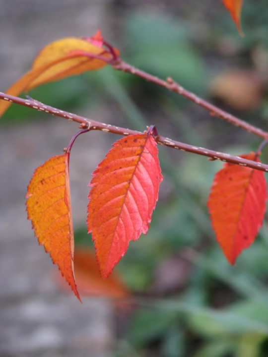 Deciduous plants shed all their leaves for part of the year (usually in autumn and winter), usually in response to colder temperatures or dry seasons, often producing seasonal colour before leaf drop.