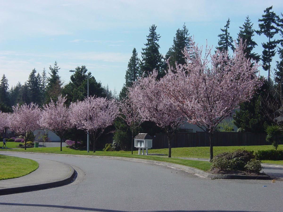Standard height is the height of the clear trunk before the graft and branching begins. Low worked (LW) trees are grafted or allowed to branch much lower on the trunk. Clear trunk (CT) vs Bushy is the difference between trimming branches up and allowing them to grow out from lower down on the trunk. Cloud pruned trees have foliage that is shaped into distinct, rounded “clouds” on carefully spaced branches.