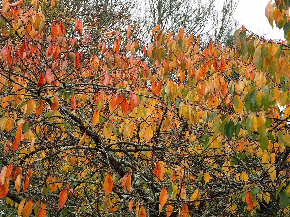 Deciduous plants shed all their leaves for part of the year (usually in autumn and winter), usually in response to colder temperatures or dry seasons, often producing seasonal colour before leaf drop.