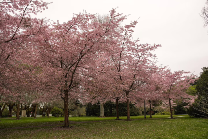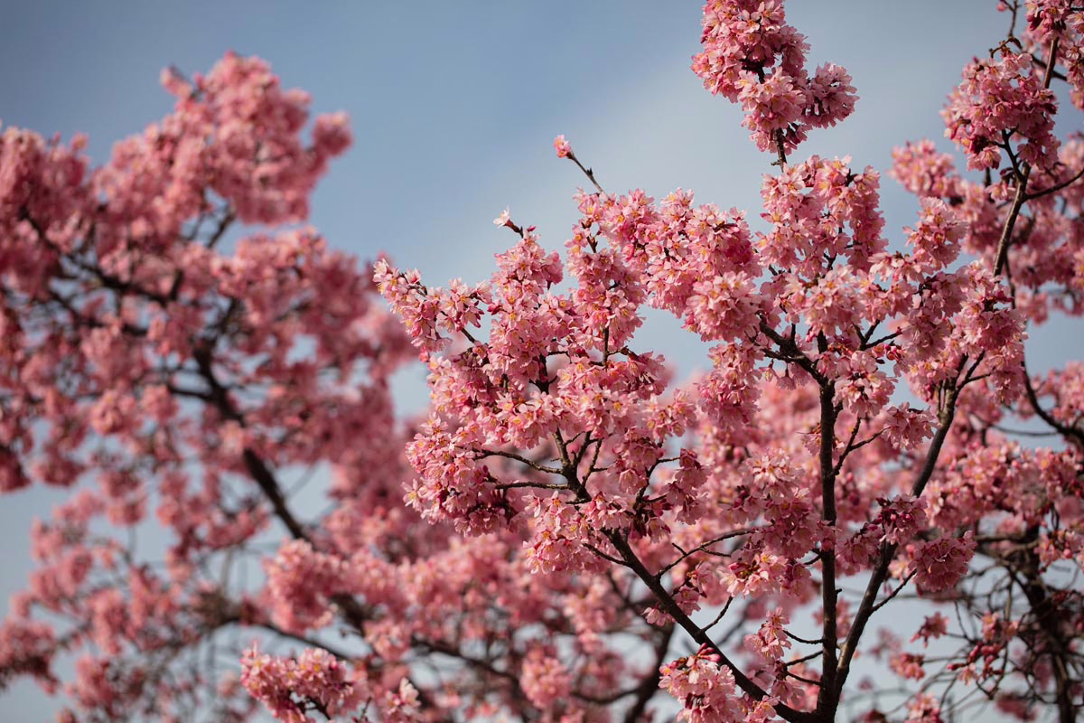 Prunus x incam ‘Okamé’ has a compact, rounded-head and produces masses of bright, pink, bell-shaped, single blossoms that hang in pendant clusters. It flowers from late-winter to early-spring and is great for the smaller garden, making an excellent street tree. In the autumn, the leaves turn yellow, orange, and red, and it is a superb tree for attracting birds and bees, as its flowers are full of nectar. Prunus x incam ‘Okamé’ is not sterile. Prunus x incam is deciduous, not native to New Zealand, and a hybrid between Prunus incisa and Prunus campanulata. Prunus x incam ‘Okamé’ was developed before 1942 by Collingwood Ingram in Benenden, England.