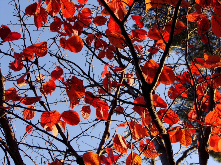 Deciduous plants shed all their leaves for part of the year (usually in autumn and winter), usually in response to colder temperatures or dry seasons, often producing seasonal colour before leaf drop.