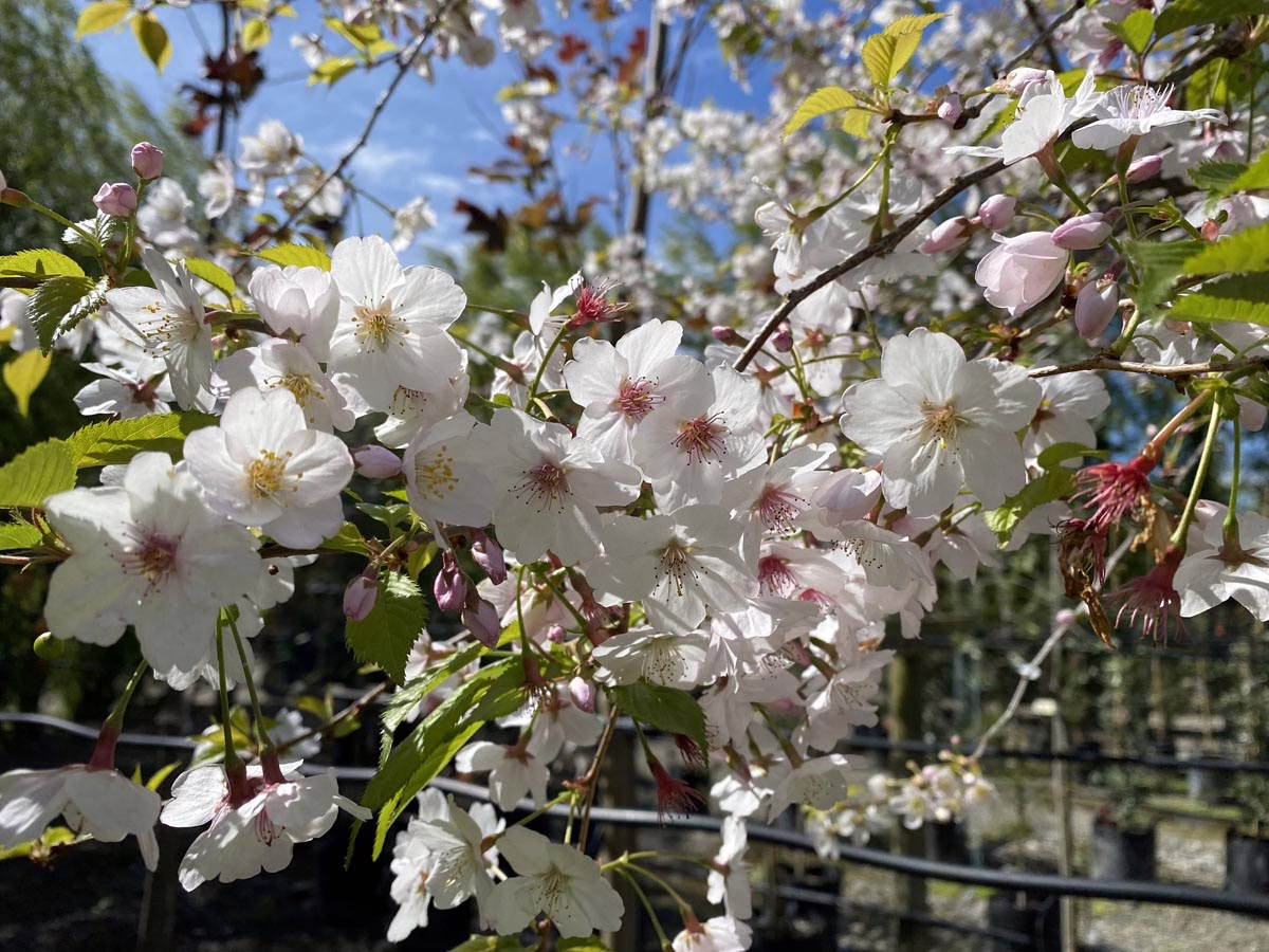 Prunus x yedoensis ‘Mountain Haze’ produces masses of small, pale-pink to white flowers with deep-pink centers that cover the gently-arching branches in early-spring, adding a soft and delicate look to the landscape. Prunus x yedoensis ‘Mountain Haze’ forms a tidy, rounded shape, making it an excellent choice for smaller gardens. In the autumn months, the foliage of Prunus x yedoensis ‘Mountain Haze’ turns shades of orange, red, and yellow, adding a bright splash of color to the landscape. Prunus x yedoensis is a hybrid between Prunus speciosa and Prunus itosakura (syn. Prunus subhirtella). Prunus x yedoensis is deciduous and native to Japan. ‘Mountain Haze’ was developed in New Zealand.