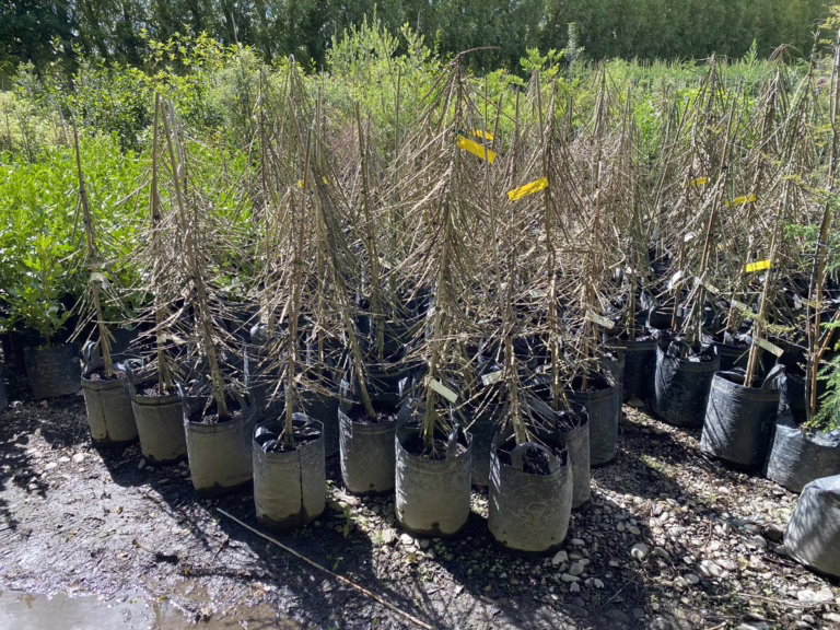Standard height is the height of the clear trunk before the graft and branching begins. Low worked (LW) trees are grafted or allowed to branch much lower on the trunk. Clear trunk (CT) vs Bushy is the difference between trimming branches up and allowing them to grow out from lower down on the trunk. Cloud pruned trees have foliage that is shaped into distinct, rounded “clouds” on carefully spaced branches.