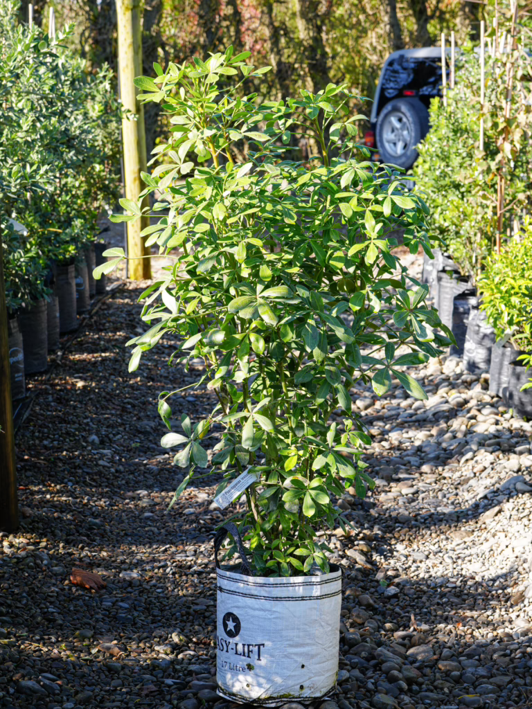 This is a dense and bushy plant that is characterized by tough, leathery, green leaves. It thrives in dry locations and is well-suited to coastal environments. Pseudopanax lessonii is an excellent option for filling in space or creating a dense screen. It can also be pruned to any desired size. Pseudopanax lessonii is evergreen and native to New Zealand.