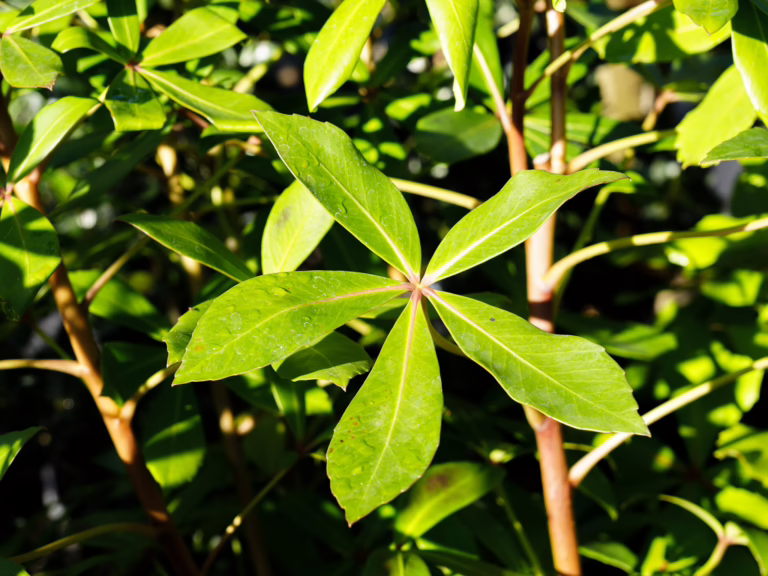 Semi-evergreen plants sit between the two, keeping most of their foliage but losing some or all leaves briefly under cooler or drier conditions before quickly regrowing them.