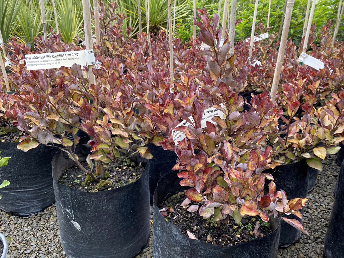 Pseudowintera colorata ‘Red Hot’ is a selection of Pseudowintera colorata that features deeper and more consistent coloring than the typical species. It is an attractive grower with aromatic foliage that is rich-red in color when young, eventually maturing to a yellow-green with red speckles and margins. Due to its unique coloration and appearance, it is an excellent choice for creating a stunning hedge. Pseudowintera colorata is evergreen and native to New Zealand. Pseudowintera colorata ‘Red Hot’ was developed before 2018 by Elliots Wholesale Nursery in Amberley, New Zealand (PVR 34007).