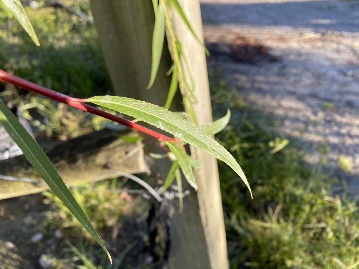 Salix vitellina ‘Pendula Aurea’ is characterized by its graceful form, with arching, wide-spreading branches that weep to the ground, adding to its visual appeal. Salix vitellina ‘Pendula Aurea’ has golden-yellow new branches that are covered with slender, soft-green leaves, adding to its beauty. It is an excellent choice as a shade tree for parks and paddocks and looks particularly great when planted next to water. During autumn, the leaves turn a golden-yellow color, adding to its seasonal interest. Salix vitellina is deciduous, not native to New Zealand, and a hybrid between Salix alba and Salix babylonica. The origin of Salix vitellina ‘Pendula Aurea’ is not certain, but it was put into commerce in 1888 by Späth nursery in Berlin, Germany.