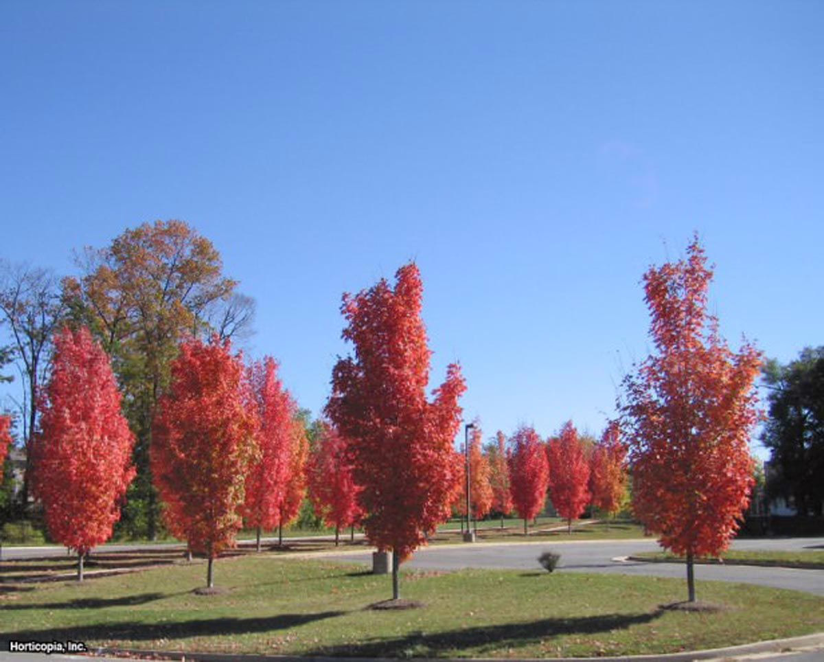 Acer rubrum ‘Columnare’ features an upright, columnar shape, which makes it an excellent choice for planting along avenues. It produces brilliant orange-red autumn leaves that are sure to make a statement. Acer rubrum ‘Columnare’ is quick-growing and bears small, red flowers during the early to mid-spring period. It thrives in moist, well-drained soil and full-sun conditions, but it is also capable of growing in a range of soils, including sandy, heavy clay, peat, dry, and poor-draining soil. Additionally, Acer rubrum ‘Columnare’ is cold-hardy and able to tolerate windy conditions. Acer rubrum is deciduous and native to eastern North America. Learn more about Acer rubrum. Acer rubrum ‘Columnare’ has an unknown origin, but it appeared in Garden and Forest, 1894, p. 65, which showed a specimen growing on private grounds in Flushing, New York, United States.