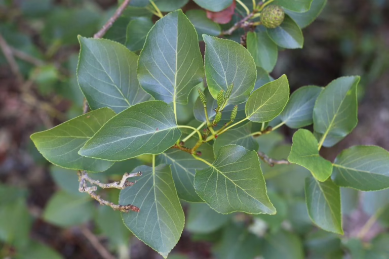 Alnus cordata is characterized by its shining, heart-shaped, green leaves and quick-growing, upright form. It can grow in both moist, swampy soils and dry, infertile soils, making it useful for erosion control and windbreaks. It is an excellent option for use as a street or shade tree. During the early to mid-spring months, it produces yellow-green catkins that serve as a source of pollen for bees. Furthermore, Alnus cordata can fix nitrogen in the soil, which is beneficial for improving soil conditions for other plants. It is deciduous and native to the southern Apennine Mountains in Italy (Campania, Basilicata and Calabria, mainly on western mountain sides) and the north-eastern mountains of Corsica. Learn more.