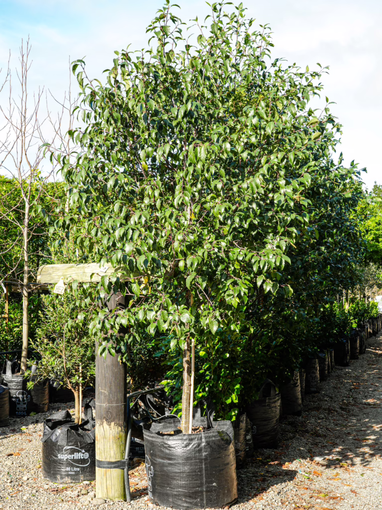 Alnus jorullensis is fast-growing and features long, green, toothed leaves. It is easy to prune and can be shaped to suit a variety of needs. It is an excellent option for use as a dense screen or privacy hedge. During the early to mid-spring months, it produces yellow-green catkins that serve as a source of pollen for bees. Additionally, Alnus jorullensis can fix nitrogen in the soil, which is beneficial for improving soil conditions for other plants. It’s evergreen and native to eastern and southern Mexico, Guatemala, and Honduras. Learn more.