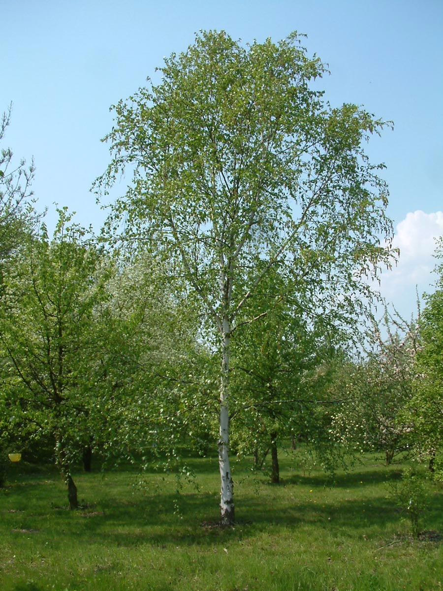 Betula utilis subsp. jacquemontii ‘Jermyns’ is vigorous and has a broad, conical shape. It features an attractive white bark that peels off in horizontal, papery flakes. Its dark green leaves turn a beautiful golden-yellow color during the autumn season. Betula utilis is deciduous and native to the Western Himalayas. Learn more about Betula utilis. Betula utilis subsp. jacquemontii ‘Jermyns’ originally came to Messrs Hillier in the United Kingdom from a Belgian nursery as Betula utilis subsp. jacquemontii and were so uniform as to indicate that they had been propagated vegetatively.