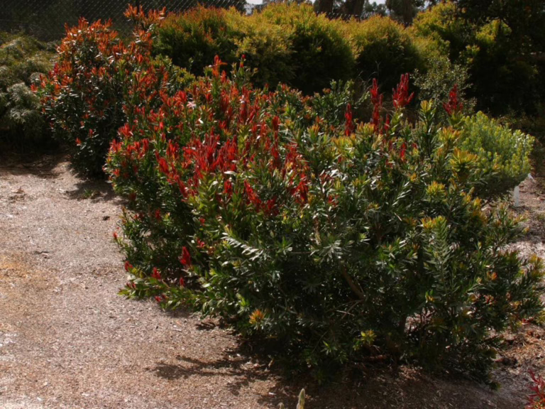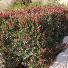 Callistemon viminalis ‘Red Alert’ is a unique bottlebrush that produces vivid-red new growth for two months in both the autumn and spring seasons, along with light-red new growth for even more months. It’s low-maintenance, drought and frost-tolerant, and thrives in windy conditions, making it suitable for most soils. Callistemon viminalis is evergreen and native to the states of New South Wales, Queensland, and Western Australia in Australia. Learn more about Callistemon viminalis. Callistemon viminalis ‘Red Alert’ was developed by Ozbreed in Australia.