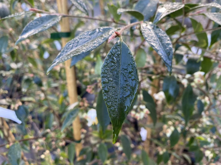 Camellia ‘Ariel’s Song’ is a bushy grower that produces small, single, white flowers during the spring season. It makes for a great specimen or hedge. Camellia ‘Ariel’s Song’ has an upright, open growth habit with pendulous branches and light-green leaves typically measuring 9cm long by 3cm wide. The flowers are usually 4cm across by 2.5cm deep with five petals, featuring gold anthers on white filaments. Camellia ‘Ariel’s Song’ is evergreen, not native to New Zealand, and a hybrid between Camellia fraterna and Camellia tsaii. Camellia ‘Ariel’s Song’ was produced by A. B. Durrant in Rotorua, New Zealand and first flowered in 1973.