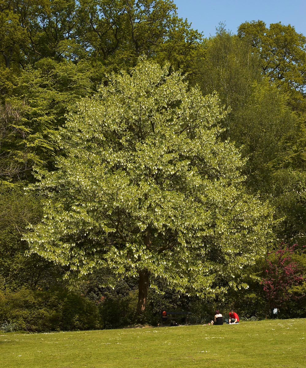 Davidia involucrata is an impressive specimen, with sturdy branches and a rounded crown that exudes a stately presence. It produces extraordinary white flowers that look like fluttering handkerchiefs in late spring, hanging gracefully beneath the beautifully ribbed leaves. It’s advisable to shelter Davidia involucrata from strong winds. In some instances, Davidia involucrata produces shades of orange and red during the autumn season. Davidia involucrata is deciduous and native to South Central and Southeast China. Learn more about Davidia involucrata.