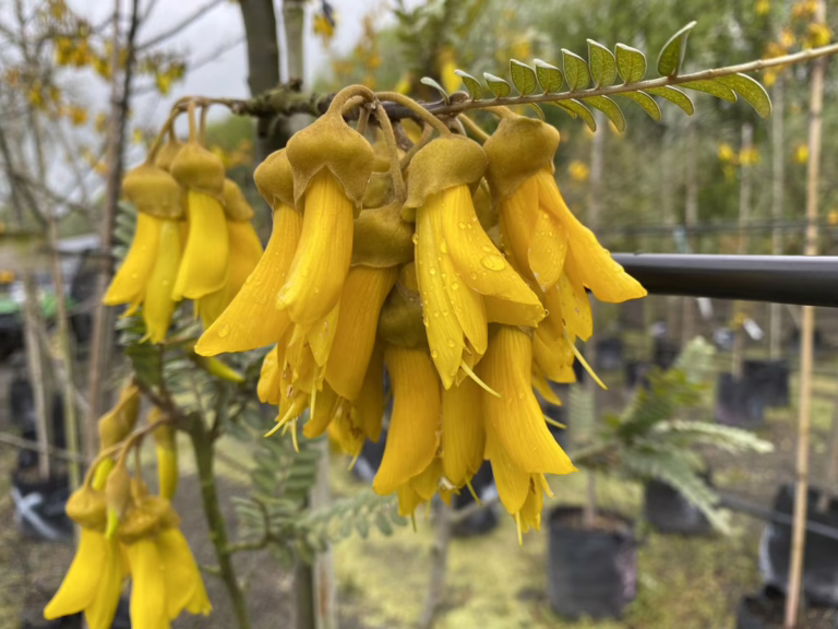 Sophora tetraptera has larger leaves and flowers compared to Sophora microphylla. Its slender form gives it an elegant and airy appearance. The golden-yellow flowers are known to attract nectar-seeking birds. It is recommended to grow it in a location with some sun or semi-shade, and where the soil is not too dry. It can be particularly attractive when placed overlooking water. Flowers typically bloom from mid-spring to early summer. Sophora tetraptera is evergreen and native to New Zealand. Learn more.