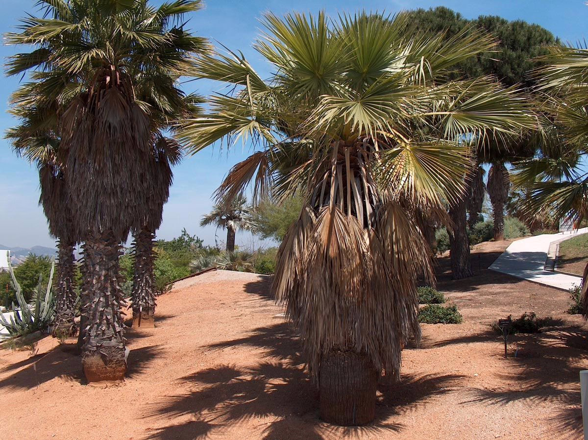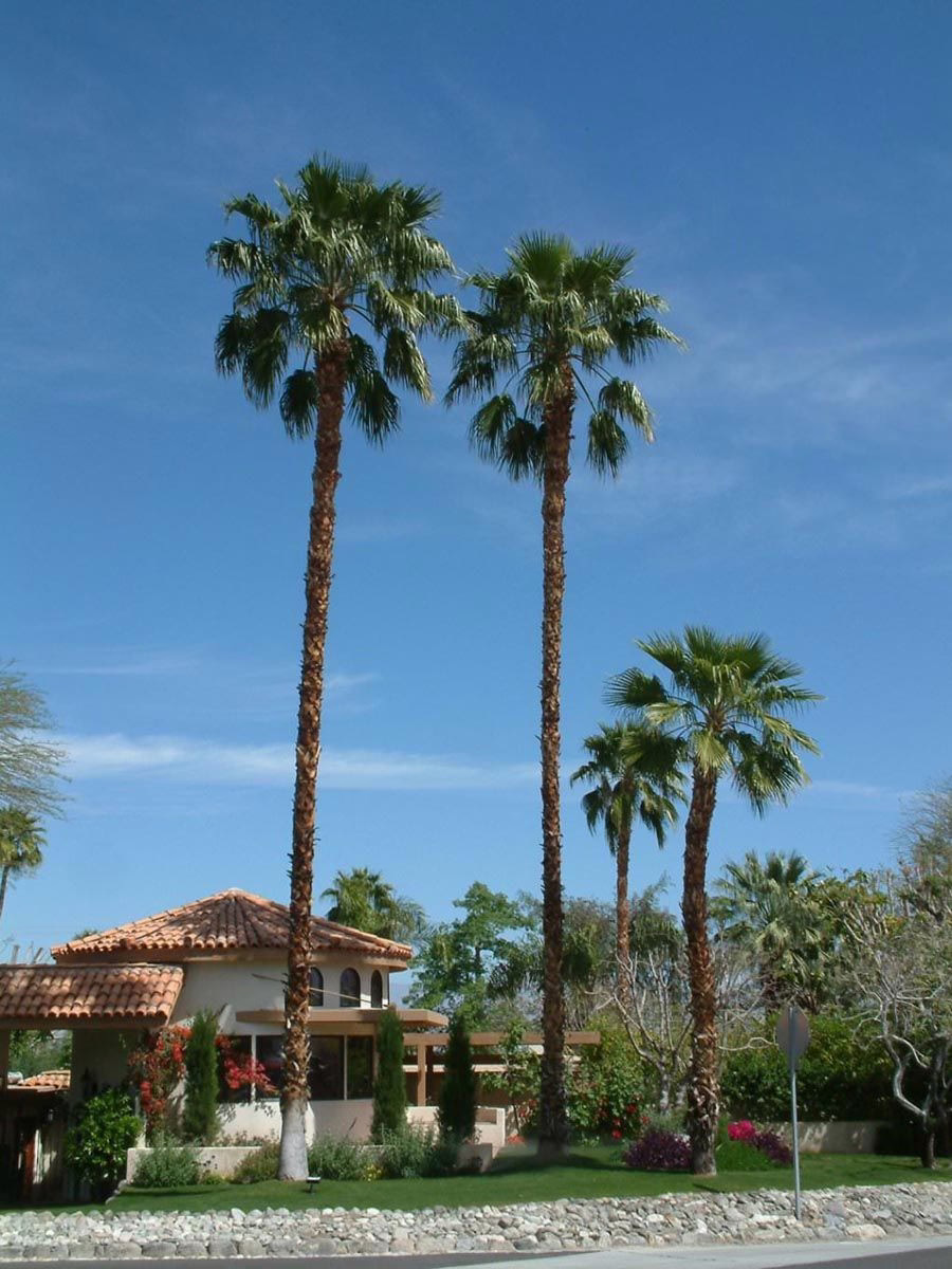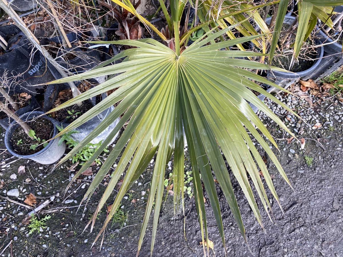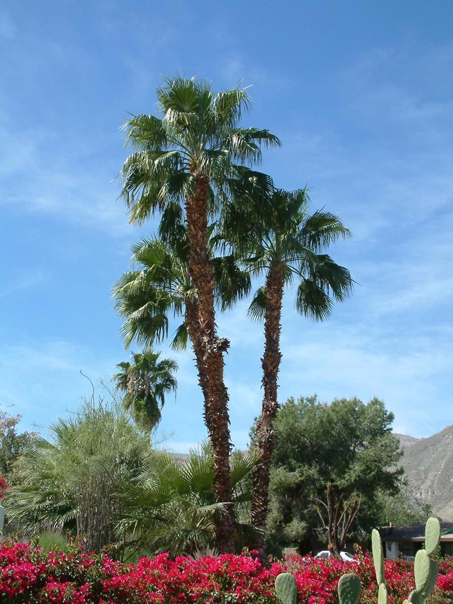 This palm species is known for its immense, fan-shaped leaves that weep when mature. As the palm ages, its old leaves drop off the trunk, leaving a distinctive criss-cross scarring on the trunk that adds to its ornamental value. The palm stems are characterized by their vicious, curved barbs, which are a distinctive feature to be wary of. Despite this, the palm is quite hardy and can thrive in temperate regions. Washingtonia robusta is evergreen and native to Mexico. Learn more about Washingtonia robusta.